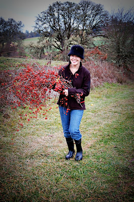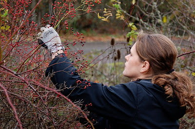 We ended up back at my sister’s home to gather cedar and rose hips…