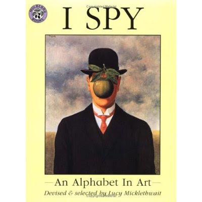 A while back I was lamenting about the fact that I couldn’t find a good alphabet book with both uppercase and lowercase letters. I’ve mentioned my favorite first alphabet book before, Museum ABC, and now I’ve found my second favorite. I Spy: An Alphabet In Art features a letter (both uppercase and lowercase) cleanly typed on a white page and one art masterpiece on the facing page in which the child can find something beginning with that letter. This provides the parent with a jumping-off point for discussing the art with their child. Excellent!