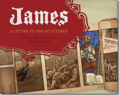 Luke received James: A Letter to the Scattered, the first in a series of graphic novels published by Olive Branch Books (the religious instruction imprint of Peace Hill Press). (You can read more about the book and see samples at this link.) (He is quite enthusiastic about The Action Bible, so I thought he might enjoy another graphic novel. I was right.)